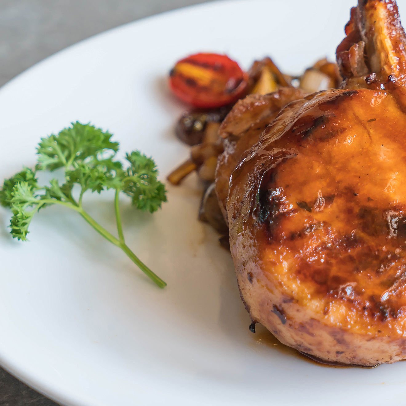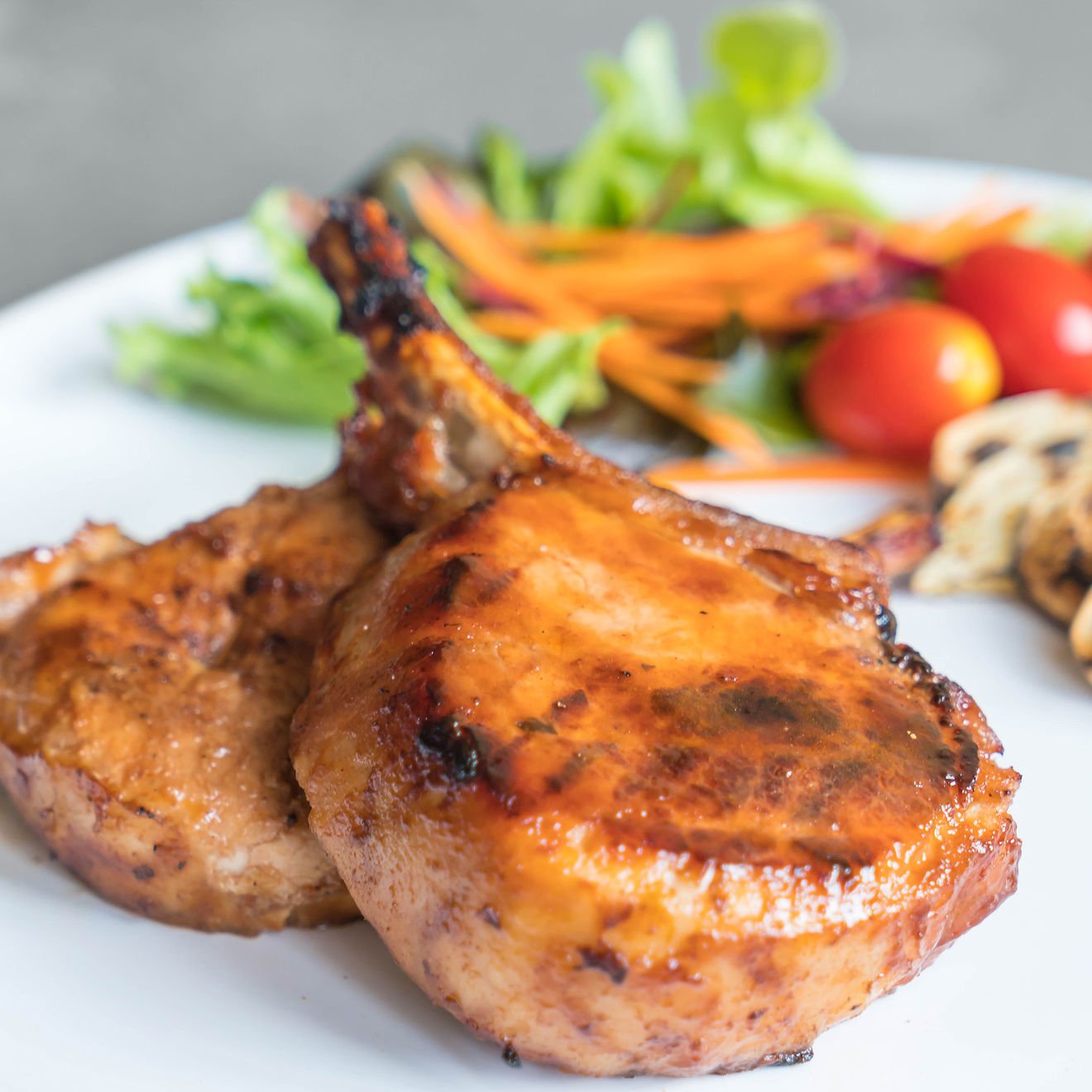 Steak from pork chop with vegetables